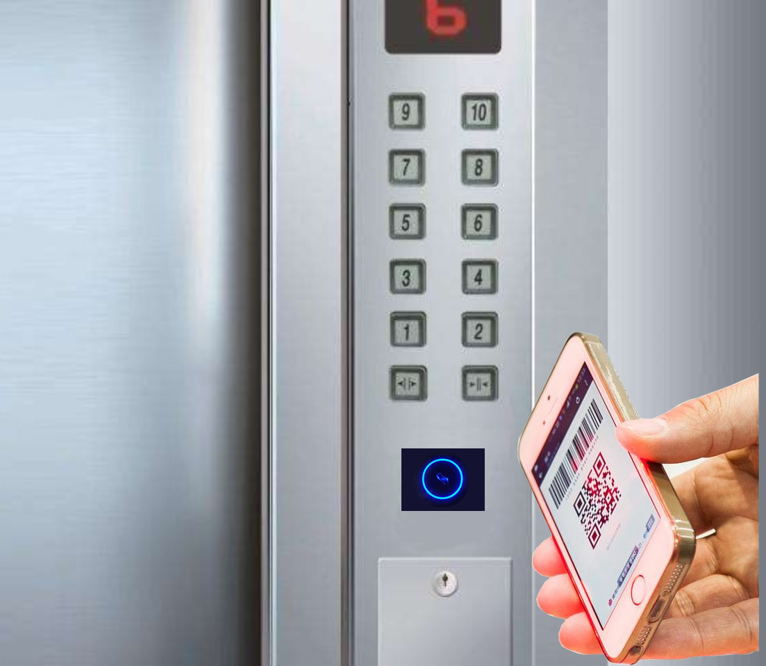 (3)訪客進(jìn)入電梯后,無(wú)需按鍵,將二維碼對(duì)準(zhǔn)電梯二維碼讀頭,倍加信梯控系統(tǒng)后自動(dòng)點(diǎn)亮樓層按鈕乘梯;