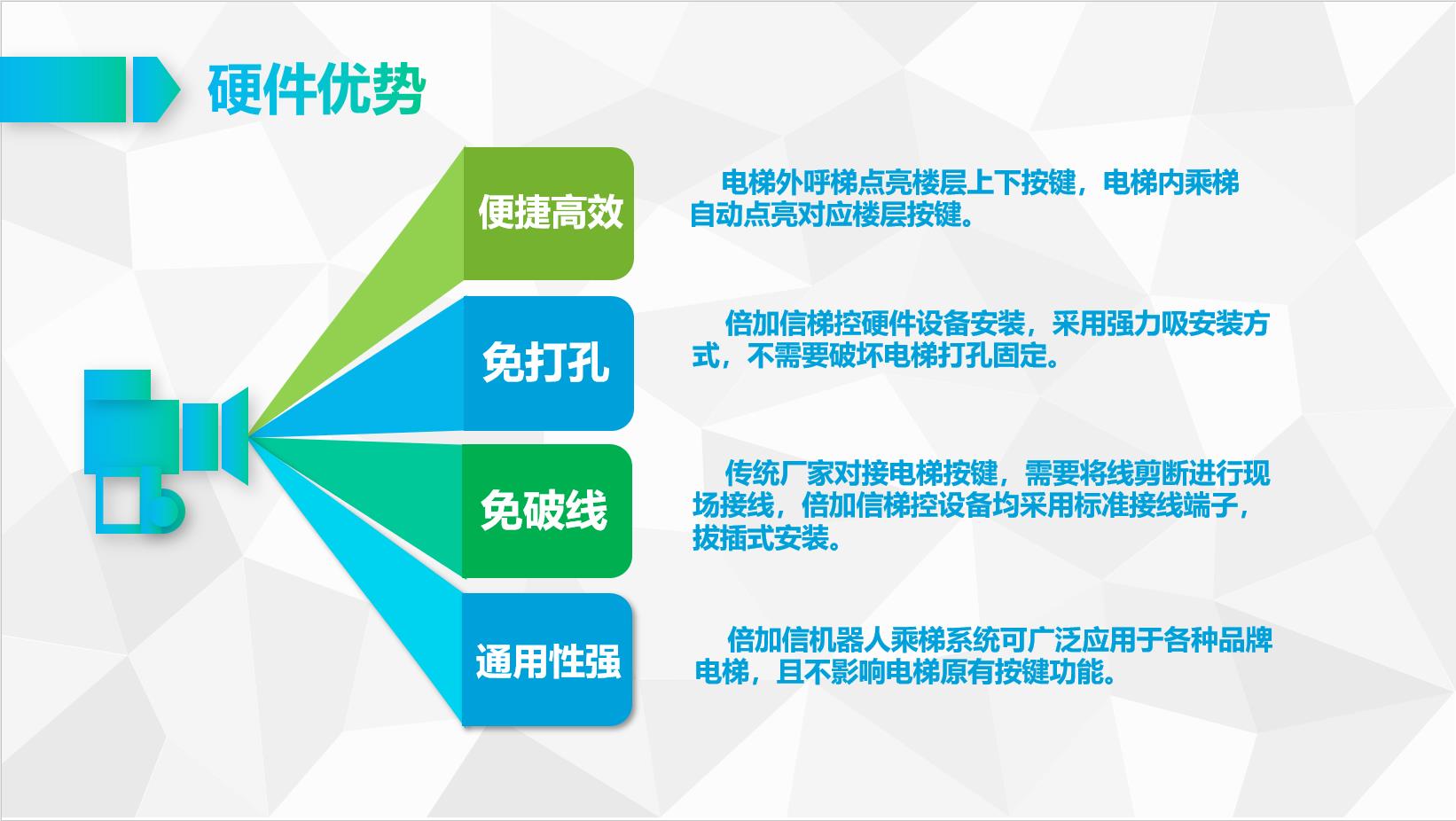 (4)倍加信機器人乘梯系統(tǒng)可廣泛應(yīng)用于各種品牌電梯,且不影響電梯原有按鍵功能。