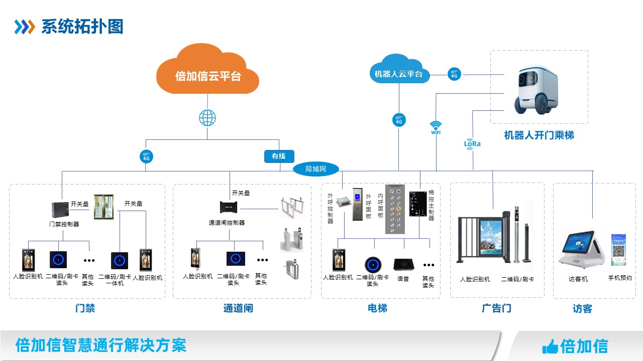 倍加信一碼通、一臉通、一卡通、機器人 門禁、梯控通行解決方案