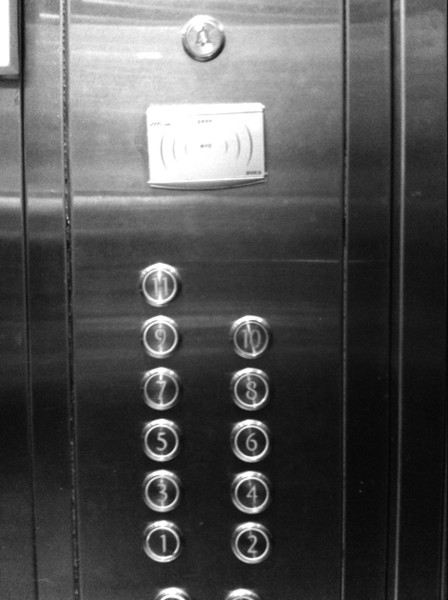 走進陽光舜城中六區2號樓內,在一樓電梯間,記者發現雖然按了電梯的上升鍵之后能夠正常進入電梯,可是在電梯內再按各個樓層的按鍵時電梯均不能啟動。家住10樓的黃女士告訴記者,想要使用電梯必須得先刷卡,“只要把磁卡在電梯按鍵上方的感應區刷一下,電梯就能正常運行了!