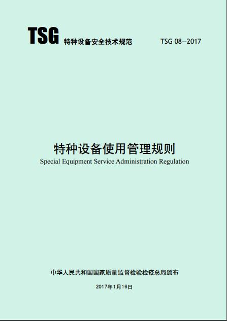 《特種設(shè)備使用管理規(guī)則 TSG 08—2017》國家質(zhì)量監(jiān)督檢驗檢疫總局頒布