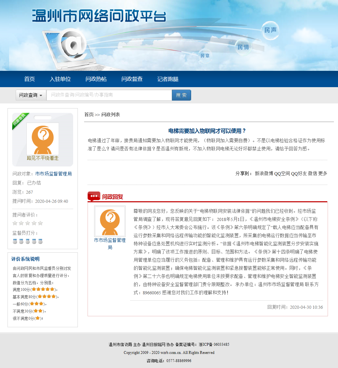 電梯通過了年審,接貴局通知需要加入物聯網才能使用,(物聯網加入需要自費)。不是以電梯檢驗合格證作為使用標準了是么?請問是否有法律依據?是否溫州有新規,不加入物聯網電梯無論好壞都禁止使用,請給予回答為感。