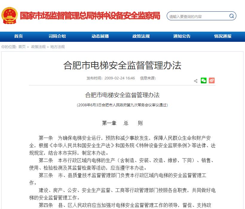 合肥市電梯安全監督管理辦法
