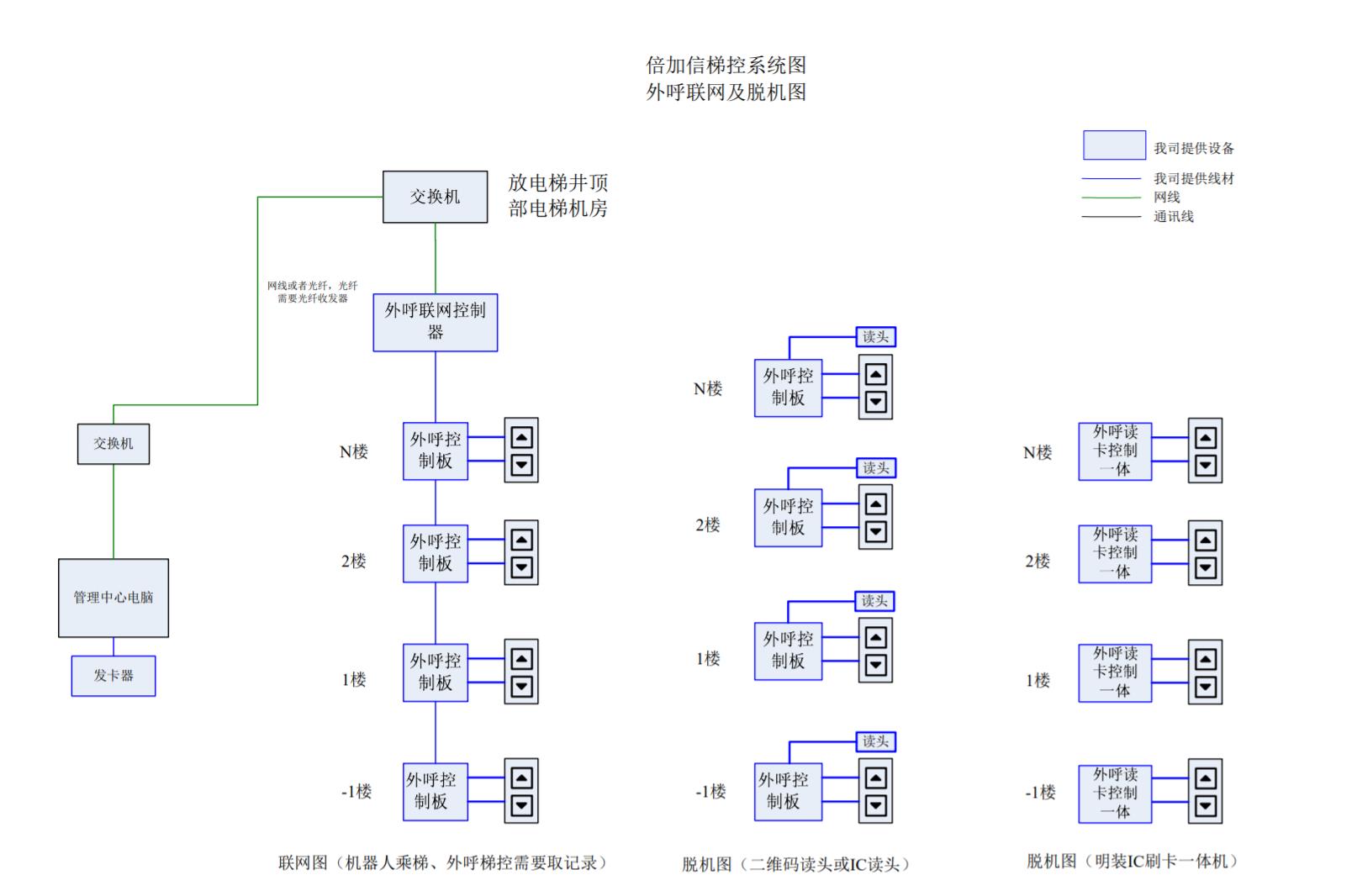 C. 如果是機器人乘梯,則不需要刷卡讀頭,直接外呼梯控控制板即可,還需要倍加信外呼聯網控制器,與機器人聯網通訊;